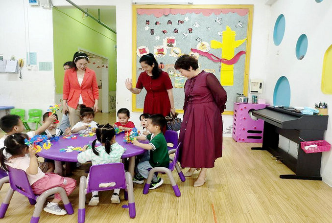 幫扶團隊走進開發(fā)區(qū)實驗幼兒園,首先參觀了幼兒園班級環(huán)境創(chuàng)設(shè),現(xiàn)場觀摩戶外游戲活動場地,聽取該園本學(xué)期的工作思路。幫扶團隊稱該園的工作計劃全面具體、重點突出,活動豐富多彩、可操作性強,幼兒活動組織有序,環(huán)境創(chuàng)設(shè)安全衛(wèi)生,體現(xiàn)以兒童為中心,有一定的教育價值。