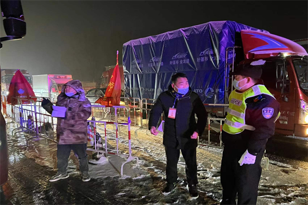 耐心勸返人員、閉環(huán)轉(zhuǎn)運(yùn)返鄉(xiāng)人員、查驗(yàn)過(guò)往車(chē)輛雙碼、48小時(shí)內(nèi)核酸陰性證明及過(guò)往貨運(yùn)車(chē)輛通行證……310交通服務(wù)站全體人員沒(méi)有因?yàn)樘鞖夂涠?jiǎn)化檢查程序,對(duì)疫情防控點(diǎn)嚴(yán)格管控,認(rèn)真檢查每一輛過(guò)往車(chē)輛,不放過(guò)一絲隱患。他們站在黨旗下,用血肉之軀堅(jiān)守在大雪寒天的戰(zhàn)“疫”戰(zhàn)場(chǎng)上。