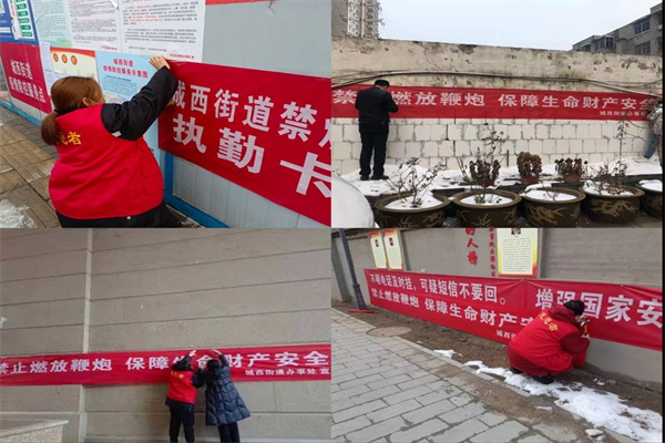 城西街道網(wǎng)格員強(qiáng)化宣傳廣度,在轄區(qū)內(nèi)走訪入戶宣傳、懸掛橫幅、張貼宣傳單,利用QQ、微信發(fā)送禁燃禁放信息,巡防車流動(dòng)宣傳等方式對(duì)轄區(qū)居民進(jìn)行宣傳引導(dǎo),并通過(guò)社區(qū)、商街LED顯示屏播放宣傳標(biāo)語(yǔ),引導(dǎo)群眾增強(qiáng)環(huán)保意識(shí)和行動(dòng)自覺,讓禁燃禁放工作深入人心,營(yíng)造禁燃禁放濃厚氛圍。