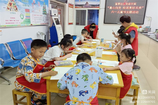 麗景社區(qū)組織轄區(qū)未成年人在新時(shí)代文明實(shí)踐站開(kāi)展“童心向黨、繪畫(huà)美好未來(lái)”六一兒童節(jié)活動(dòng)。
