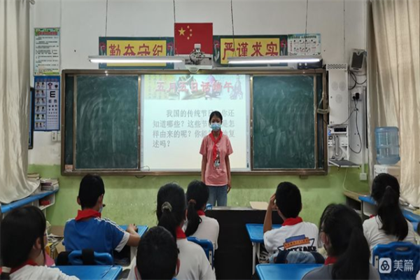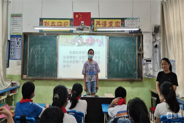 活動中,富平社區(qū)村委人員利用PPT追溯端午節(jié)的由來,給大家講述屈原的故事,讓同學們明白端午節(jié)不只是粽子節(jié)、龍舟節(jié),更是民族節(jié)、愛國節(jié)。同時,蘆校長還向同學介紹有關端午懸掛艾草、佩香囊、賽龍舟、吃粽子等各地不盡相同的民風習俗。最后,同學們還學習了端午節(jié)的相關詩詞,進一步了解了端午節(jié)的來歷、習俗等,從而感受我國傳統(tǒng)佳節(jié)的獨特魅力。