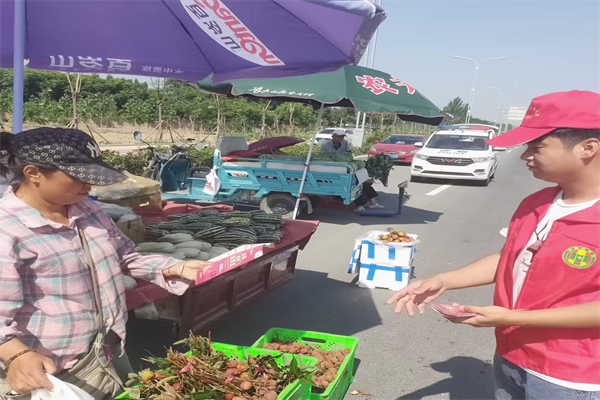 除了在農(nóng)貿(mào)集市開展宣傳活動外,普法志愿者們還對金明大道的過往行人及周邊商戶進(jìn)行宣傳,向群眾發(fā)放宣傳資料,以通俗易懂的語言為群眾解讀《反有組織犯罪法》,進(jìn)一步增強(qiáng)群眾對掃黑除惡工作的知曉率和參與率。