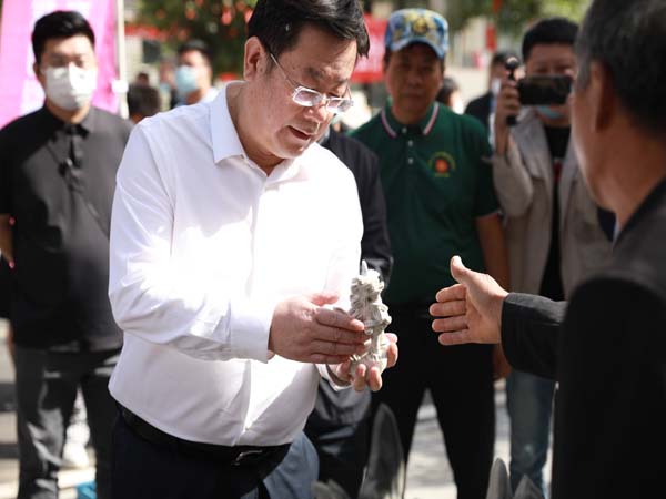 “農(nóng)夫集市”展示區(qū), 幾十家名特優(yōu)新農(nóng)產(chǎn)品在這里亮相。有蜜瓜,紅薯,花生,梨和葡萄,還有花生奶,黃豆醬,藏紅花等琳瑯滿目的農(nóng)產(chǎn)品,受到“逛節(jié)”人們的歡迎,紛紛品嘗購買。豐收節(jié)不僅有現(xiàn)場(chǎng)展銷,還借助新媒體,現(xiàn)場(chǎng)直播帶貨,利用“網(wǎng)紅人物”“流量平臺(tái)”,創(chuàng)新線上線下多種形式,讓優(yōu)質(zhì)農(nóng)產(chǎn)品被更多商家知曉,推動(dòng)品牌農(nóng)產(chǎn)品與城鄉(xiāng)市場(chǎng)對(duì)接,帶動(dòng)鄉(xiāng)村產(chǎn)業(yè)發(fā)展、增加農(nóng)民經(jīng)濟(jì)收入,進(jìn)而實(shí)現(xiàn)鄉(xiāng)村振興。