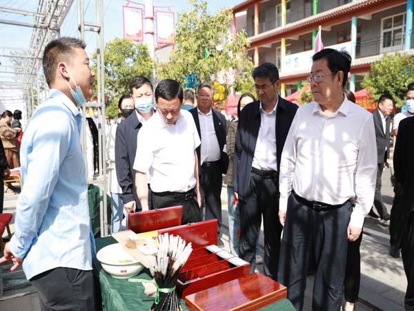 記者來到“農(nóng)業(yè)非遺文化展”現(xiàn)場(chǎng)?吹讲粌H有開封汴繡、古箏、剪紙、拓片、麥桿畫、磚雕,以及葫蘆烙畫,汝陽劉毛筆等,還邀請(qǐng)國(guó)家級(jí)非遺《超化吹歌》展演,以及中國(guó)牡丹畫第一村的農(nóng)民畫家前來交流。農(nóng)民朋友在這里近距離感受農(nóng)業(yè)非遺文化神奇,喚起人們對(duì)文化記憶和鄉(xiāng)土風(fēng)情的認(rèn)同感。展覽凸現(xiàn)了古都厚重文化與開封新時(shí)代文化的交融興盛,給人留下非常深刻的印象。