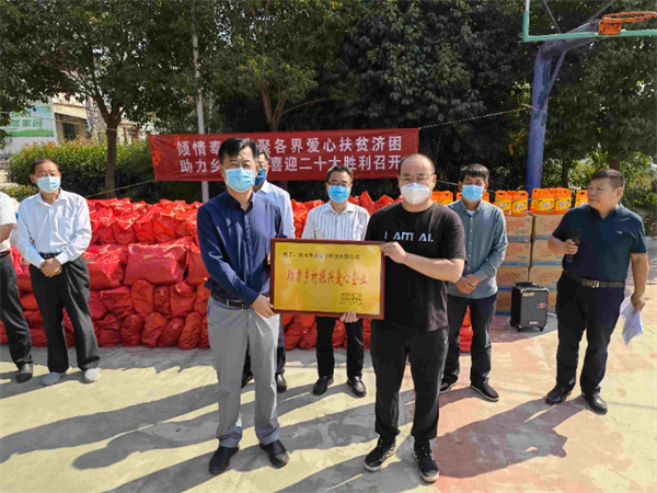 此次活動中,示范區(qū)民建委員會、區(qū)新聯(lián)會部分會員,河南坤厚醫(yī)藥科技有限公司副總經(jīng)理李延共同出資購買物品用于捐贈。孫浩向愛心黨派、愛心企業(yè)頒發(fā)牌匾,閆凱向企業(yè)愛心人士頒發(fā)證書,郝艷峰代表水稻鄉(xiāng)向愛心人士、企業(yè)表示感謝。王文勝代表民建示范區(qū)委員會做發(fā)言,表示,要傾情奉獻、凝聚各界愛心,扶貧濟困,助力鄉(xiāng)村振興。李玉廷代表示范區(qū)黨工委、管委會向民建示范區(qū)委員會、區(qū)新聯(lián)會的各位會員及愛心企業(yè)代表的善行義舉表示崇高的敬意,向長期以來關(guān)心支持示范區(qū)鄉(xiāng)村振興工作的各位領(lǐng)導(dǎo)、社會各界人士表示衷心的感謝。李玉廷表示,脫貧攻堅的勝利,示范區(qū)得到了廣大各界人士的鼎力支持,一大批愛心人士,用實際行動推動了示范區(qū)各項事業(yè)的發(fā)展。
