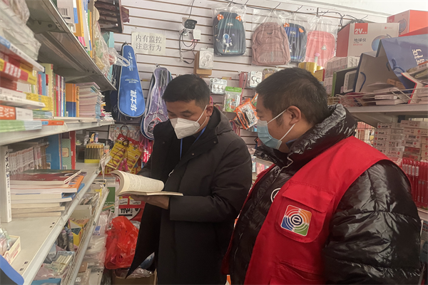 文化站站長(zhǎng)董巖帶隊(duì)對(duì)學(xué)校周邊文具店、書店等文化經(jīng)營(yíng)場(chǎng)所是否存在印刷非法出版物進(jìn)行詳細(xì)查看,相關(guān)證照是否齊全,是否銷售涉黃及盜版盜印書籍,是否銷售非法有害政治性出版物以及宣傳血腥暴力等危害青少年身心健康的兒童繪本、卡通漫畫。檢查活動(dòng)中未發(fā)現(xiàn)含有反動(dòng)、淫穢、迷信、國(guó)家明令禁止印刷的政治性非法出版物和涉黃涉非現(xiàn)象。