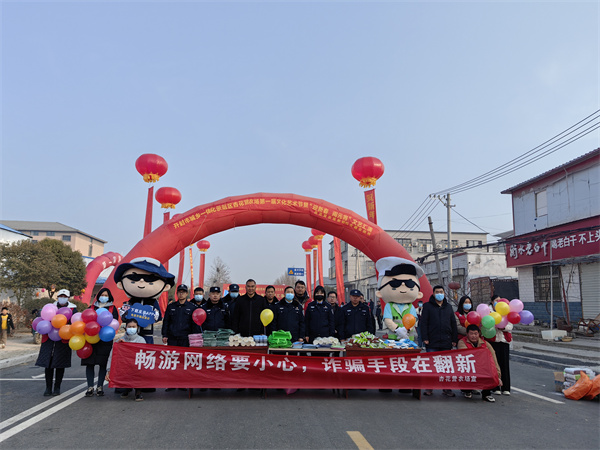 中新河南網(wǎng)2月5日電:2月5日,正值元宵佳節(jié),開(kāi)封市城鄉(xiāng)一體化示范區(qū)杏花營(yíng)農(nóng)場(chǎng)隆重舉辦第一屆文化藝術(shù)節(jié)暨“迎新春 鬧元宵”文藝匯演活動(dòng)。在活動(dòng)現(xiàn)場(chǎng),農(nóng)場(chǎng)綜治辦邀請(qǐng)示范區(qū)公安分局反詐中心聯(lián)合轄區(qū)派出所共同開(kāi)展反電詐、禁種鏟毒集中宣傳活動(dòng)。