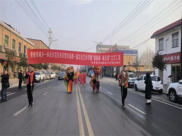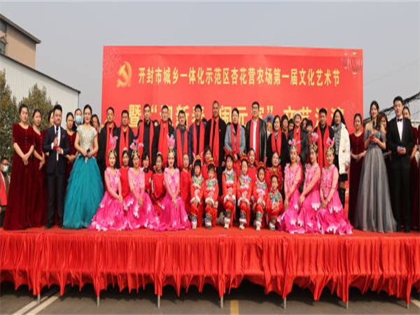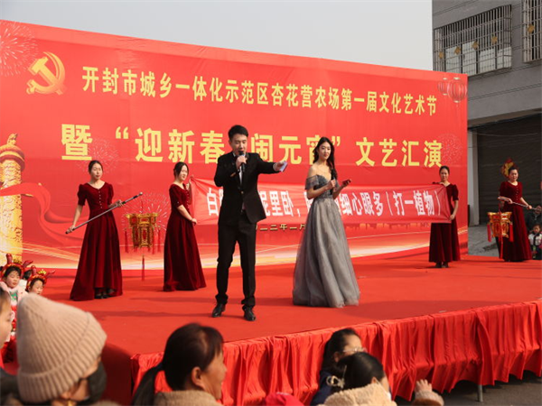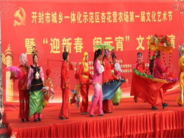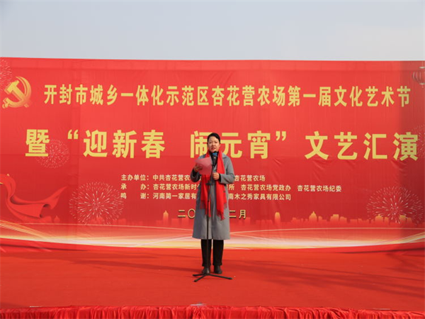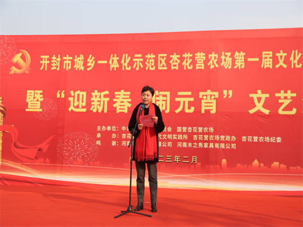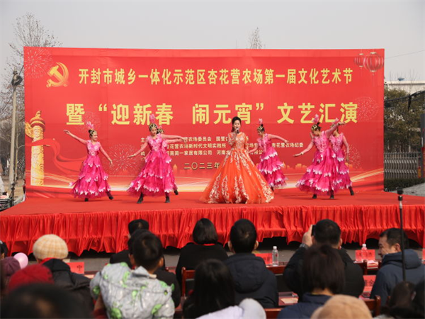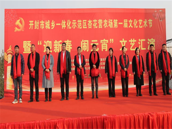 中新河南網(wǎng)2月5日電:為深入學習宣傳黨的二十大精神,活躍轄區(qū)居民文化生活,營造歡樂的元宵佳節(jié)氛圍。2月5日上午,開封市城鄉(xiāng)一體化示范區(qū)杏花營農(nóng)場隆重舉辦“我們的中國夢,文化進萬家”主題第一屆文化藝術節(jié)暨“迎新春 鬧元宵”文藝匯演活動。示范區(qū)人大工作聯(lián)絡處主任楊杰,黨工委委員、宣傳部部長王志英,文化旅游局局長辛艷麗、教體局局長聶愛軍、文明辦主任張忠?guī)X、婦聯(lián)主席程娟,紀工委委員王勇,杏花營農(nóng)場班子成員、機關干部職工、受邀“市、區(qū)365好人”、“好婆婆好媳婦”、“美麗庭院戶”、“先進工作者”以及各社區(qū)“兩委”干部及群眾共計600余人參加活動。
