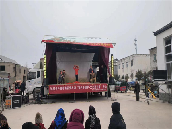 中新河南網(wǎng)2月10日電:為豐富群眾節(jié)日期間文化生活,營(yíng)造歡樂(lè)祥和、喜慶熱烈的節(jié)日氛圍,開(kāi)封市城鄉(xiāng)一體化示范區(qū)杏花營(yíng)農(nóng)場(chǎng)以走進(jìn)萬(wàn)家、服務(wù)百姓為宗旨,開(kāi)展“我們的中國(guó)夢(mèng)--文化進(jìn)萬(wàn)家”結(jié)合區(qū)文化旅游局邀請(qǐng)河南豫劇團(tuán)三團(tuán)開(kāi)展“舞臺(tái)藝術(shù)送基層”活動(dòng)。滿足基層群眾文化需求,豐富人民群眾文化生活,凝聚奮進(jìn)新時(shí)代新征程的強(qiáng)大精神力量。