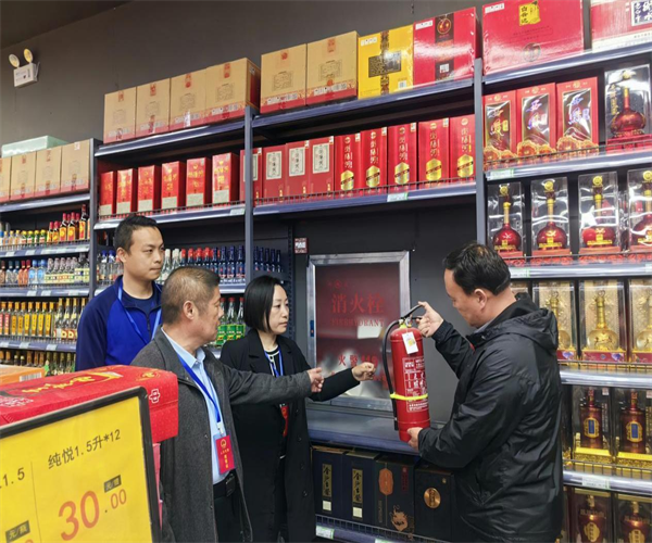 檢查組通過對(duì)大型商場、超市檢查,消防設(shè)施配備齊全,滅火器合格,散裝食品無質(zhì)檢問題。