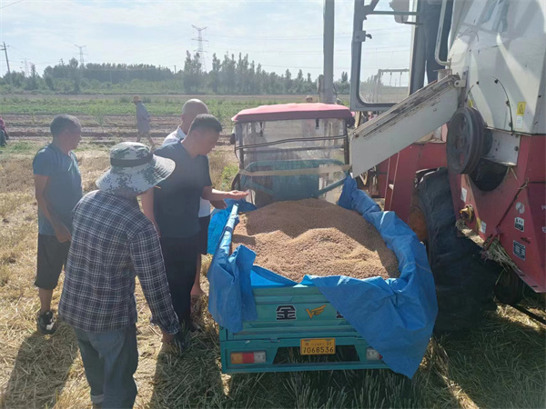 統(tǒng)籌協(xié)調(diào),強(qiáng)化指導(dǎo)服務(wù)。街道農(nóng)業(yè)中心保持人員隨時(shí)在崗,及時(shí)提供相關(guān)服務(wù),深入田間地頭,指導(dǎo)開(kāi)展小麥搶收。積極組織人力,協(xié)調(diào)現(xiàn)有收割機(jī),人機(jī)不停,全力保障小麥搶收需求。同時(shí),指導(dǎo)村民時(shí)刻關(guān)注天氣變化,及時(shí)翻晾未烘干小麥,防止直接堆積造成發(fā)熱霉變。