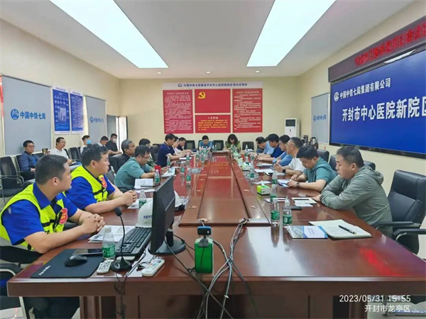 現(xiàn)場觀摩結(jié)束后,在新院區(qū)項(xiàng)目會(huì)議室召開了“開封市衛(wèi)健系統(tǒng)項(xiàng)目建設(shè)觀摩推進(jìn)會(huì)”。市衛(wèi)健委黨組成員、副主任顧超主持會(huì)議并講話。他說,今天,我們?cè)谥行尼t(yī)院新院區(qū)項(xiàng)目工地現(xiàn)場觀摩了項(xiàng)目進(jìn)展情況,收獲頗多,受益匪淺。中心醫(yī)院新院區(qū)建設(shè)作為河南省、開封市的重點(diǎn)項(xiàng)目,克服了許多潛在困難,正在轟轟烈烈、熱火朝天的向前推進(jìn)。新院區(qū)地下室的土建結(jié)構(gòu)全部建成,7號(hào)樓能源中心完成主體封頂。門診樓、綜合病房樓都在加速推進(jìn)。一個(gè)占地386.5畝,一期、二期總建筑面積40.3萬m²,總床位2600張的重點(diǎn)項(xiàng)目已經(jīng)初具規(guī)模,呈現(xiàn)在我們面前。我為之感到振奮,感到鼓舞,也感受到了中心醫(yī)院領(lǐng)導(dǎo)班子干事創(chuàng)業(yè)、奮發(fā)有為的好的精神狀態(tài)。在這里,我代表市衛(wèi)健委向項(xiàng)目建設(shè)的主體中心醫(yī)院、向項(xiàng)目參建單位中鐵七局項(xiàng)目部表示感謝。