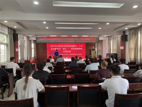 中新河南網(wǎng)6月30日電:為持續(xù)深入學習宣傳貫徹黨的二十大精神,進一步激勵和引領新時代黨員干部不忘初心、牢記使命,踔厲奮發(fā)、勇毅前行,提升黨員干部凝聚力和向心力。6月30日下午,開封市示范區(qū)杏花營街道舉辦踐行二十大永遠跟黨走“迎七一”黨的創(chuàng)新理論宣講比賽。街道有關領導、站所長、參賽選手30余人參加活動。