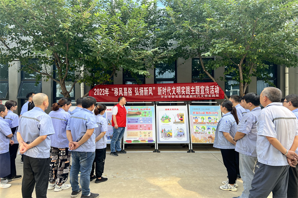 活動(dòng)現(xiàn)場(chǎng),通過張貼宣傳海報(bào),為企業(yè)員工發(fā)放移風(fēng)易俗宣傳手冊(cè)、塑料盆等小禮品,廣泛宣傳移風(fēng)易俗,倡導(dǎo)文明節(jié)儉之風(fēng),引導(dǎo)企業(yè)員工樹立正確的價(jià)值觀念,弘揚(yáng)勤儉節(jié)約的優(yōu)良傳統(tǒng),用積極健康的生活方式進(jìn)一步推動(dòng)移風(fēng)易俗工作,夯實(shí)文明新風(fēng)建設(shè)。