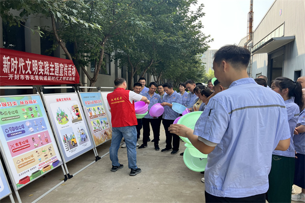 中新河南網(wǎng)9月7日電:9月7日上午,開封市示范區(qū)杏花營街道文明辦聯(lián)合應(yīng)急管理所到企業(yè)開展“移風(fēng)易俗 弘揚(yáng)新風(fēng)”新時(shí)代文明實(shí)踐主題宣傳活動(dòng)。圍繞傳播文明理念、涵育文明風(fēng)尚、勤儉節(jié)約、弘揚(yáng)時(shí)代新風(fēng)、抵制迷信崇尚科學(xué),垃圾分類等內(nèi)容,充分發(fā)揮新時(shí)代文明實(shí)踐陣地的宣傳作用。