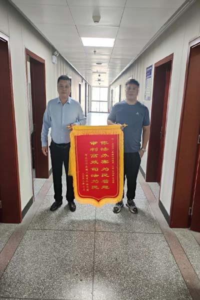 中新河南網(wǎng)10月11日電:10月10日下午,河南某水利工程有限公司法定代表人劉某將一面寫(xiě)有“依法辦案為民著想 審判高效司法為民”錦旗送到蘭考縣法院民事審判庭員額法官楊想軍手中,說(shuō)到“沒(méi)想到楊法官只用四天時(shí)間就把案件調(diào)解成了,接下來(lái)也能給農(nóng)民工兄弟發(fā)工資了,之前因?yàn)檫@事我連家不敢回,車(chē)都抵押出去了,現(xiàn)在終于松了一口氣,真心感謝楊法官”。