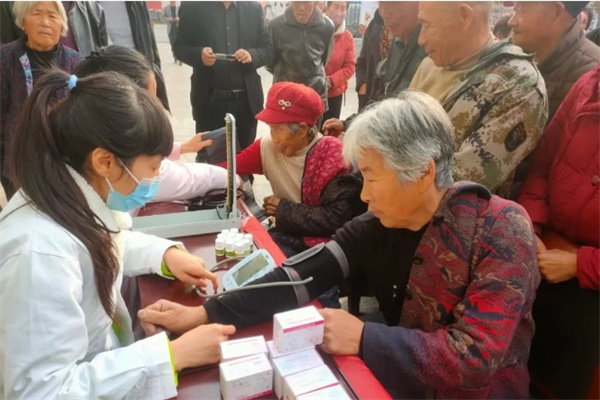醫(yī)務(wù)人員為前來(lái)診治和咨詢的群眾提供測(cè)血壓、測(cè)血糖等服務(wù),并向他們講解健康保健知識(shí)、發(fā)放健康管理服務(wù)手冊(cè),特別叮囑他們要合理膳食、均衡營(yíng)養(yǎng)、多參加鍛煉,定期體檢,養(yǎng)成健康的生活習(xí)慣。