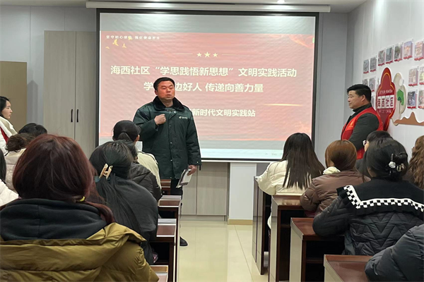 中新河南網(wǎng)3月5日電:為培育和踐行社會(huì)主義核心價(jià)值觀,充分發(fā)揮道德模范、身邊好人在基層精神文明建設(shè)工作中的典型示范引領(lǐng)作用。3月4日,開(kāi)封市示范區(qū)杏花營(yíng)農(nóng)場(chǎng)海西社區(qū)新時(shí)代文明實(shí)踐站開(kāi)展“學(xué)習(xí)身邊好人,傳遞向善力量”主題宣講活動(dòng),為群眾傳遞源源不斷的正能量。