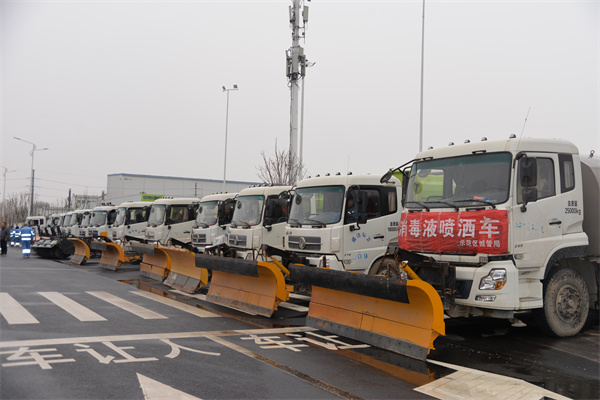 完成對(duì)新設(shè)備的調(diào)試及原有除雪機(jī)械的維修保養(yǎng)。做好應(yīng)急設(shè)備和物資的儲(chǔ)備,全面檢測(cè)各類(lèi)機(jī)械設(shè)備。共準(zhǔn)備推雪板34臺(tái)、雪滾車(chē)3臺(tái)、撒布機(jī)12臺(tái)、融雪車(chē)6臺(tái)、融雪劑1000余噸、鐵鍬1000余把、掃帚1000余把,環(huán)衛(wèi)工人1200余人隨時(shí)待命。