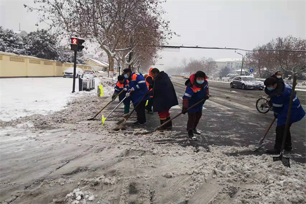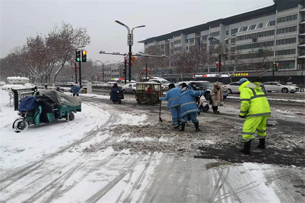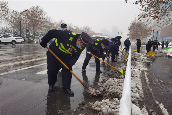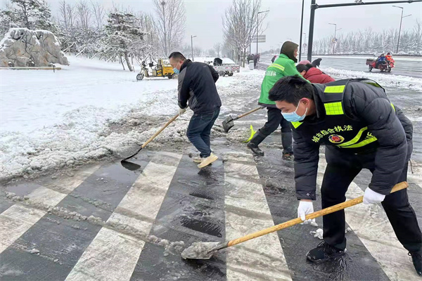 開封市示范區(qū)城管局出動1900余人連夜清雪除冰