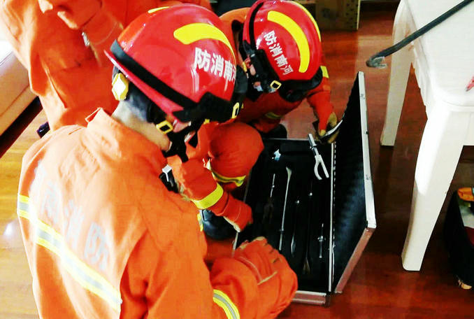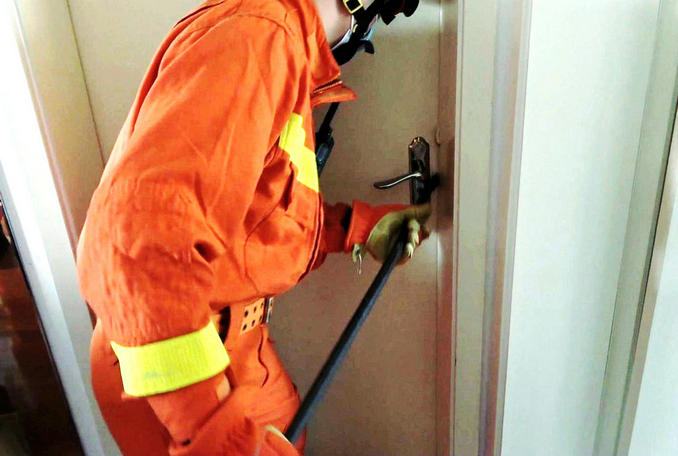 救援人員詢問家長得知:小女孩在臥室玩耍時,不慎將房門反鎖,但小女孩年齡太小根本不會開鎖,房門鑰匙也早已丟失。