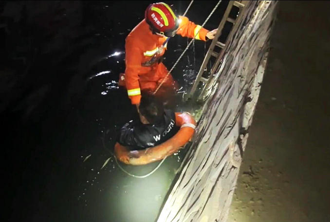 河南禹州:醉酒男子不慎墜入護(hù)城河中 消防隊員立即趕赴現(xiàn)場救援