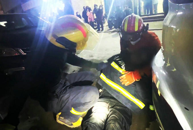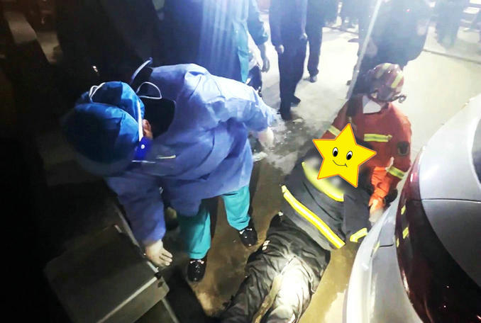 由于該男子渾身濕透、意識模糊,消防員貼心地將自己的戰(zhàn)斗服脫下為其御寒取暖,男子一直靠在消防員懷中等待醫(yī)護(hù)人員到來。