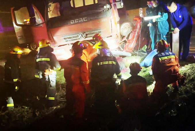 河南許昌:貨車與三輪車相撞一人被困 消防醫(yī)護聯(lián)手成功實施救援