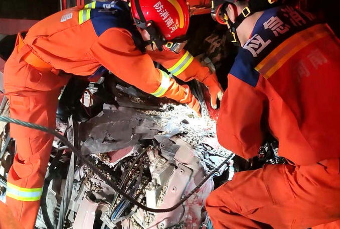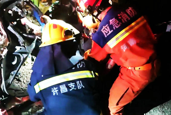 河南禹州:兩輛貨車發(fā)生追尾司機(jī)被困 消防隊員立即趕赴破拆救援