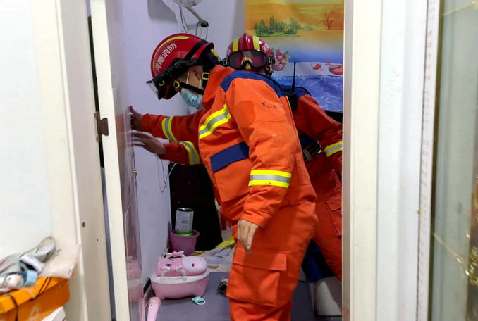 指揮員原計劃使用撬杠破拆后,然后用力把門踹開。因擔心踹開門的瞬間,可能碰到房里面哭鬧的孩子,決定改變救援方案。詢問家屬得知,孩子臥室的窗戶沒有上鎖。