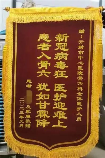 中新河南網(wǎng)1月16日電:近日,開(kāi)封市中心醫(yī)院骨科六病區(qū)收到了一面特殊的錦旗。