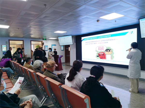 申婷婷主治醫(yī)師進行做《莫讓微血管并發(fā)癥掏空您的錢包》健康科普講座,并與前來就診的患者進行面對面交流,為其講解糖尿病相關(guān)知識,為患者進行疾病診斷和健康咨詢。