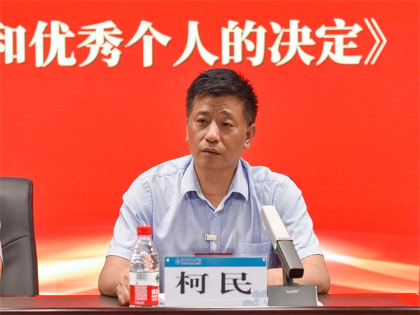 黨委委員、紀委書記柯民宣讀《中共開封市中心醫(yī)院委員會關(guān)于表彰“學(xué)習(xí)強國”先進集體和優(yōu)秀個人的決定》