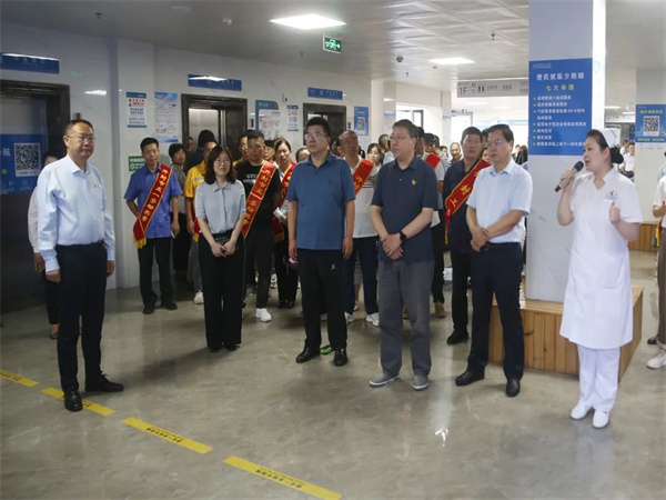 儀式結束后,與會領導同勞模(工匠)代表共同觀摩我院門診就診服務流程,并聆聽勞模(工匠)就醫(yī)優(yōu)診服務各項工作舉措。