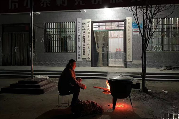 清晨5點(diǎn),駐村工作隊(duì)及村委干部開始忙碌起來(lái),提前準(zhǔn)備各類食材,生火熬制臘八粥。