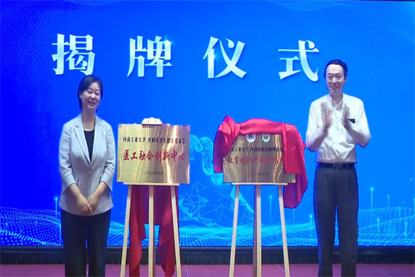 當(dāng)天上午,開封市人民政府市長吳海燕、河南工業(yè)大學(xué)校長吳智深共同為“醫(yī)工融合創(chuàng)新中心”揭牌