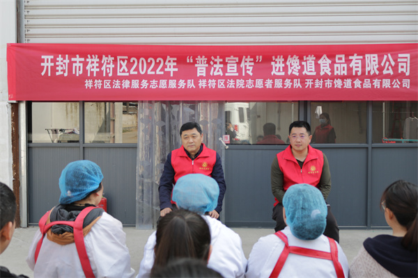 中新河南網(wǎng)3月12日電:為提升干警能力作風(fēng)建設(shè),進(jìn)一步增強(qiáng)企業(yè)職工法律意識,強(qiáng)化法治理念,促進(jìn)企業(yè)健康發(fā)展,2022年3月11日上午,開封市祥符區(qū)法院志愿者在黨組副書記、副院長楊勁松的帶領(lǐng)下,來到開封市饞道食品有限公司,開展了一場別開生面的“普法宣傳”宣傳活動,切實解決了企業(yè)最關(guān)心、最迫切的法律問題。