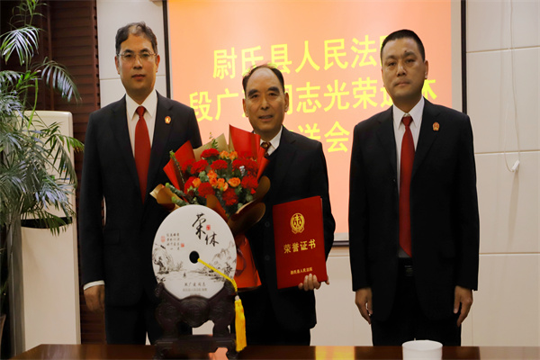 最后,院黨組書記、院長鄧強為段廣建同志頒發(fā)光榮退休證書,并對段廣建同志多年來為司法事業(yè)作出積極貢獻表達了崇高的敬意和衷心的感謝,希望他退休不褪色,離崗不離黨,把對司法事業(yè)的忠誠、奉獻續(xù)寫下去。(李晨光)