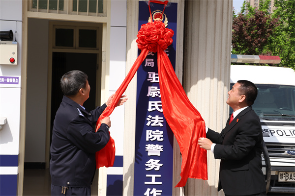 尉氏縣人民法院舉行縣公安局駐院警務(wù)工作站揭牌儀式