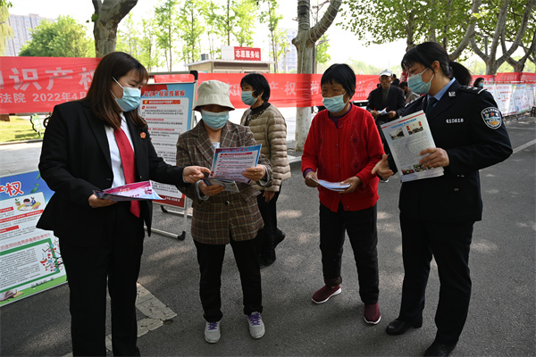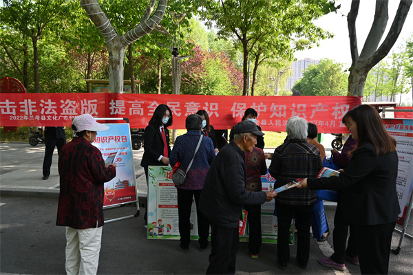 中新河南網(wǎng)4月20日電:在第22個(gè)“世界知識(shí)產(chǎn)權(quán)日”來臨之際,4月20日上午,蘭考縣法院以“全面開啟知識(shí)產(chǎn)權(quán)強(qiáng)國(guó)建設(shè)新征程”為活動(dòng)主題,組織干警在人民廣場(chǎng)開展知識(shí)產(chǎn)權(quán)司法保護(hù)宣傳活動(dòng)。