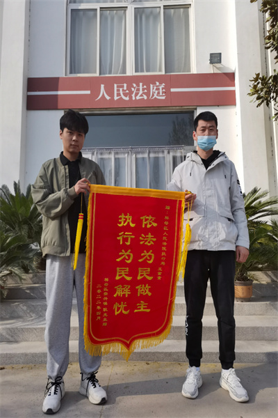 中新河南網(wǎng)4月20日電: 近日,申請(qǐng)執(zhí)行人耿某將寫有“依法為民做主,執(zhí)行為民解憂”的錦旗送到開封市祥符區(qū)人民法院執(zhí)行干警王童童手中,以此表達(dá)對(duì)祥符區(qū)法院執(zhí)行局高效執(zhí)行,切實(shí)維護(hù)申請(qǐng)執(zhí)行人利益的感謝。