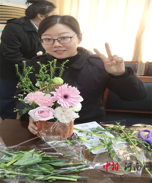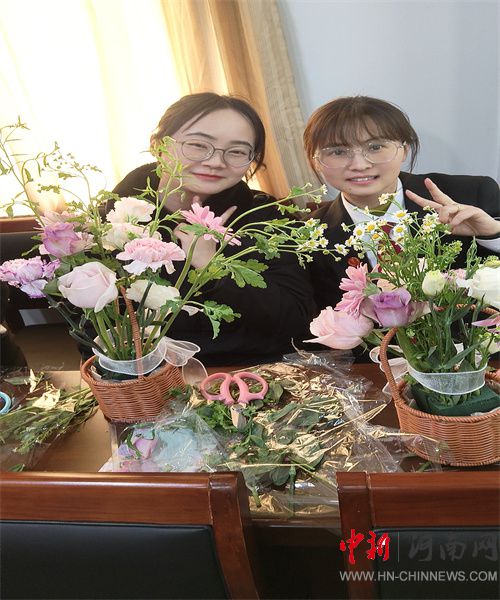 分享會結束后,女干警們來到插花活動現(xiàn)場;顒友埩藢I(yè)花藝師進行指導,現(xiàn)場擺放著玫瑰、康乃馨等多種鮮花,色彩斑斕,花香四溢。