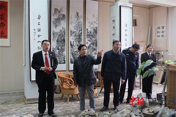 在東京藝術(shù)館,萬朝陽法官聽取負(fù)責(zé)人史振東在字畫經(jīng)營發(fā)展、人員管理等方面的情況,介紹了法院在優(yōu)化營商環(huán)境、服務(wù)企業(yè)發(fā)展方面采取的措施以及取得的成果,并結(jié)合實(shí)際案例,以案釋法,普及《知識(shí)產(chǎn)權(quán)法》《著作權(quán)法》等相關(guān)法律法規(guī)。
