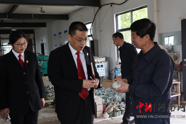 中新河南網(wǎng)3月13日電:3月13日下午,開封龍亭區(qū)人民法院北郊人民法庭庭長萬朝陽與柳園口鄉(xiāng)牛莊社區(qū)支部委員趙青龍一行到開封市宋煌文化有限公司和東京藝術(shù)館開展普法宣傳活動(dòng),進(jìn)一步提升知識(shí)產(chǎn)權(quán)保護(hù)工作成效,護(hù)航企業(yè)高質(zhì)量發(fā)展。