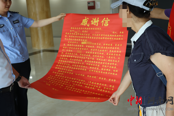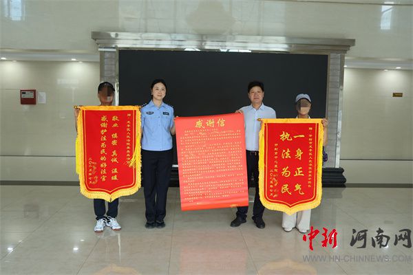 中新河南網8月22日電:8月20日,當事人王某懷著無比感激之情,將錦旗和一封感謝信贈送給開封市龍亭區(qū)人民法院黨組書記、院長宗振宇和執(zhí)行干警吳晶晶,用質樸的方式表達真摯的感激之情。