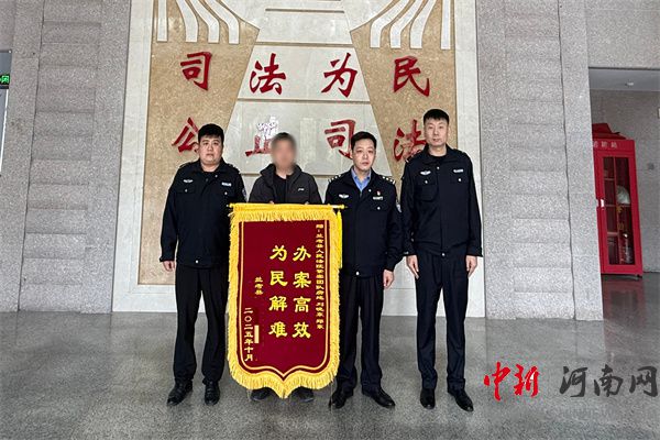 中新河南網(wǎng)10月15日電:秋意漸濃,司法溫暖不減。國慶中秋雙節(jié)剛過,蘭考縣法院執(zhí)行工作已開啟新一輪加速度。10月13日,執(zhí)行局房地、劉曉東、鄭方三名干警一日內(nèi)連續(xù)獲贈(zèng)兩面錦旗,錦旗背后是兩個(gè)暖心的執(zhí)行故事,承載著人民群眾對(duì)法院工作的真摯認(rèn)可。