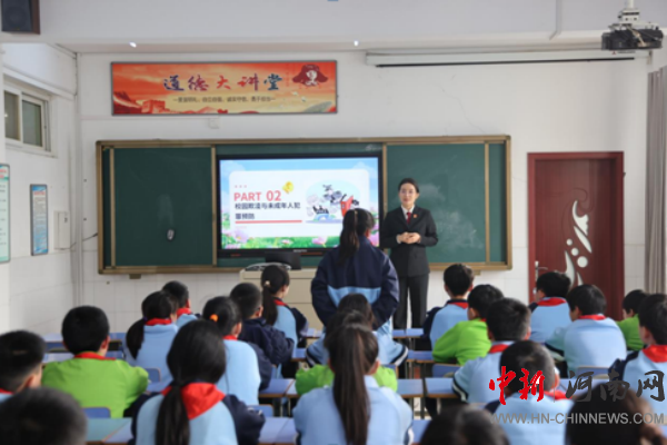 中新河南網(wǎng)3月13日電:為護(hù)航未成年人健康成長,筑牢校園法治安全防線,新學(xué)期伊始,開封市鼓樓區(qū)人民法院刑事審判庭庭長、“七色花”少年審判工作室負(fù)責(zé)人畢曼云,帶領(lǐng)干警栗蘇走進(jìn)中山路第五小學(xué),開展“開學(xué)法治第一課”法治副校長主題普法宣講活動,為孩子們送上一份特殊的“開學(xué)禮物”。