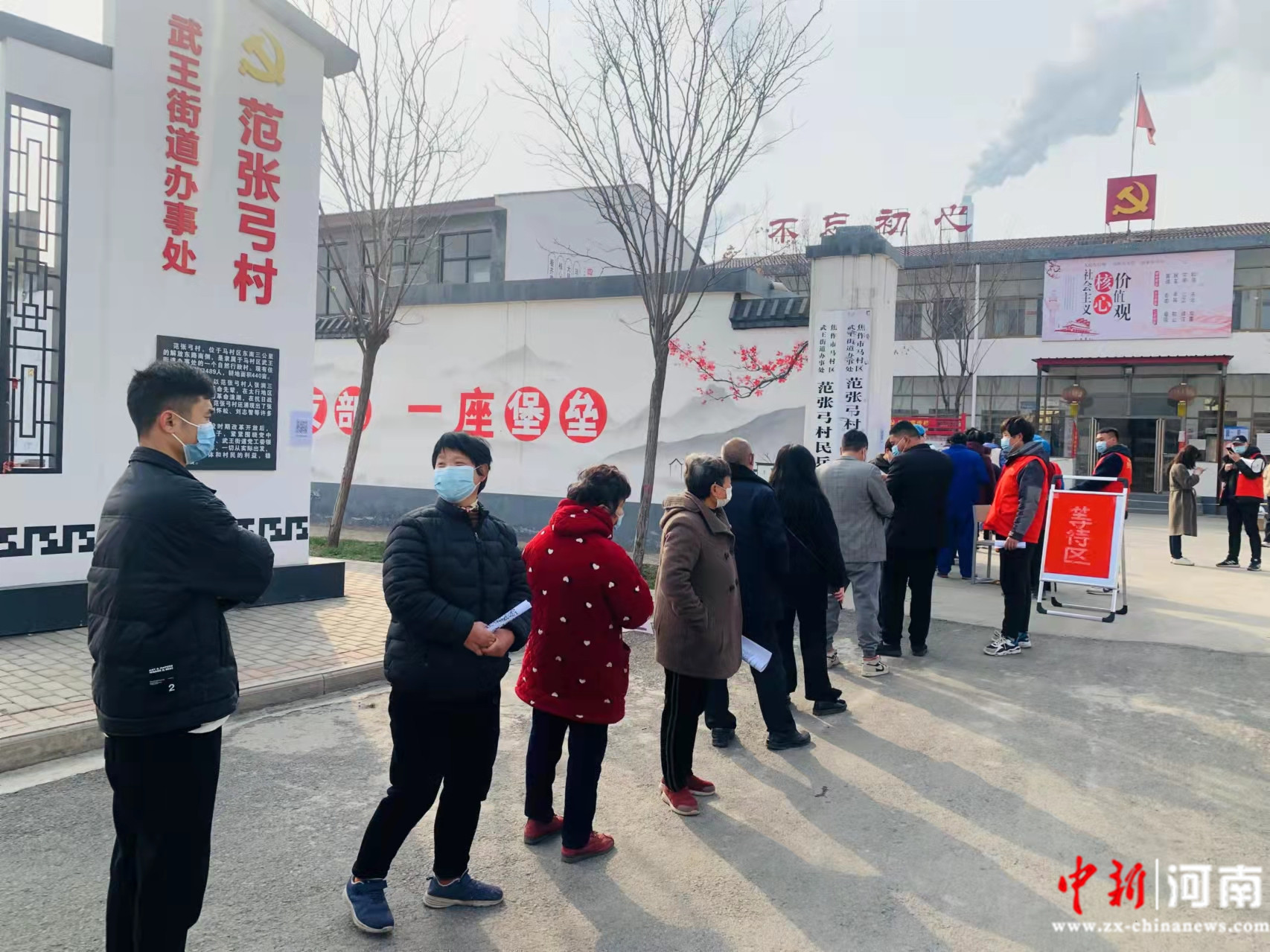 3月19日凌晨2時許,焦作市馬村區(qū)武王街道范張弓村網(wǎng)格長、專職網(wǎng)格員們依然在忙碌,搬運物資、擺放桌椅、張貼提示語、拉起警戒線,事無巨細,在大家的協(xié)作配合下,不到兩小時完成了2000人核酸檢測場地準備。短暫休整后,早上7點,網(wǎng)格長劉小莊穿戴好紅馬甲開始秩序引導(dǎo)工作,小喇叭、測溫槍是他的“標配”。“打開檢測碼,注意佩戴好口罩,保持一米間隔。”一大早兒,劉小莊就吆喝起來......