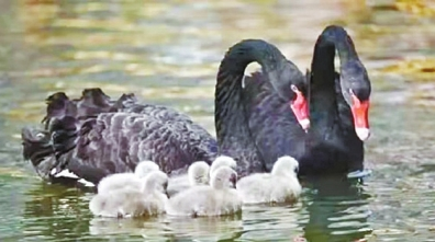 自然孵化6只小天鵝 黑天鵝夫婦護(hù)雛忙