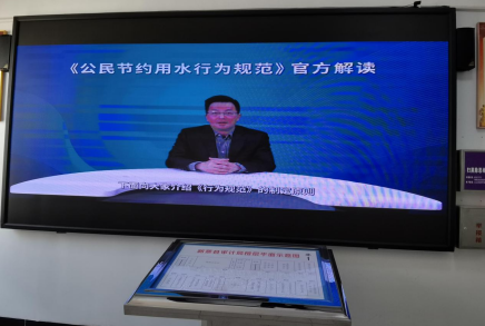 二是利用大廳電子屏幕播放宣傳標(biāo)語(yǔ)、宣傳視頻,在微信工作群發(fā)布節(jié)水倡議書(shū)、節(jié)水知識(shí),營(yíng)造宣傳節(jié)水知識(shí)的濃厚氛圍。